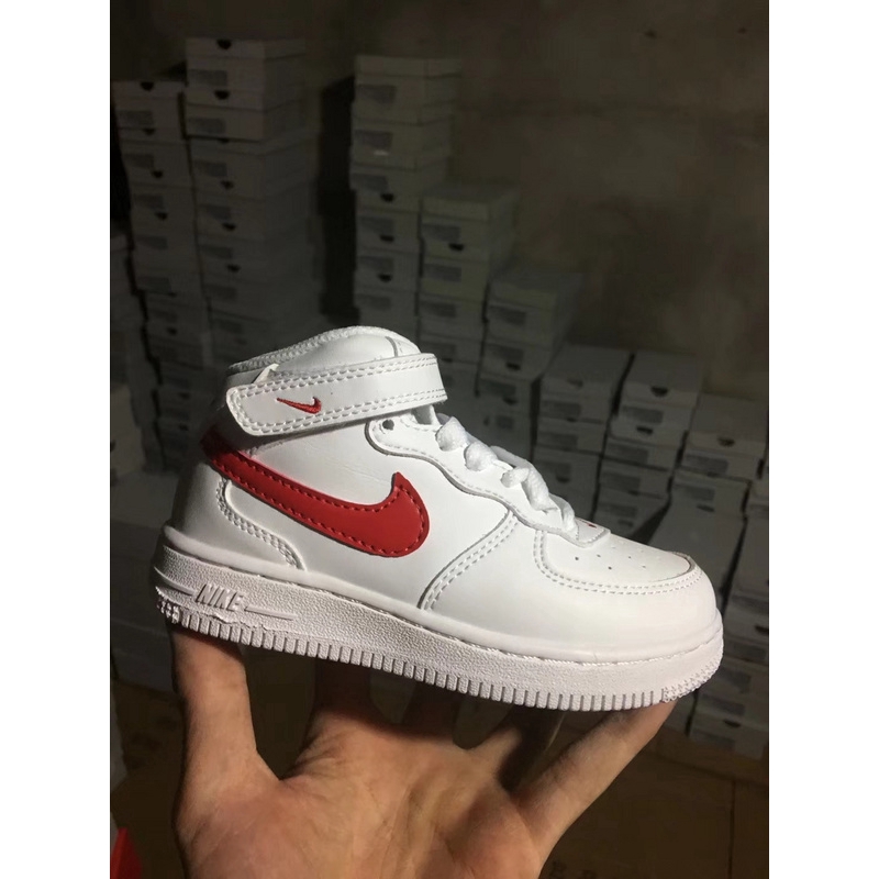 Asli Nike Air Force 1 Mid Af1 Velcro Mid Top Anak Sneakers Putih Merah Sepatu Olahraga Anak Anak 22 35 Shopee Indonesia