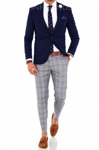 Sacou Barbati Slim Fit Bleumarin Cu Carouri I Escudo Ro